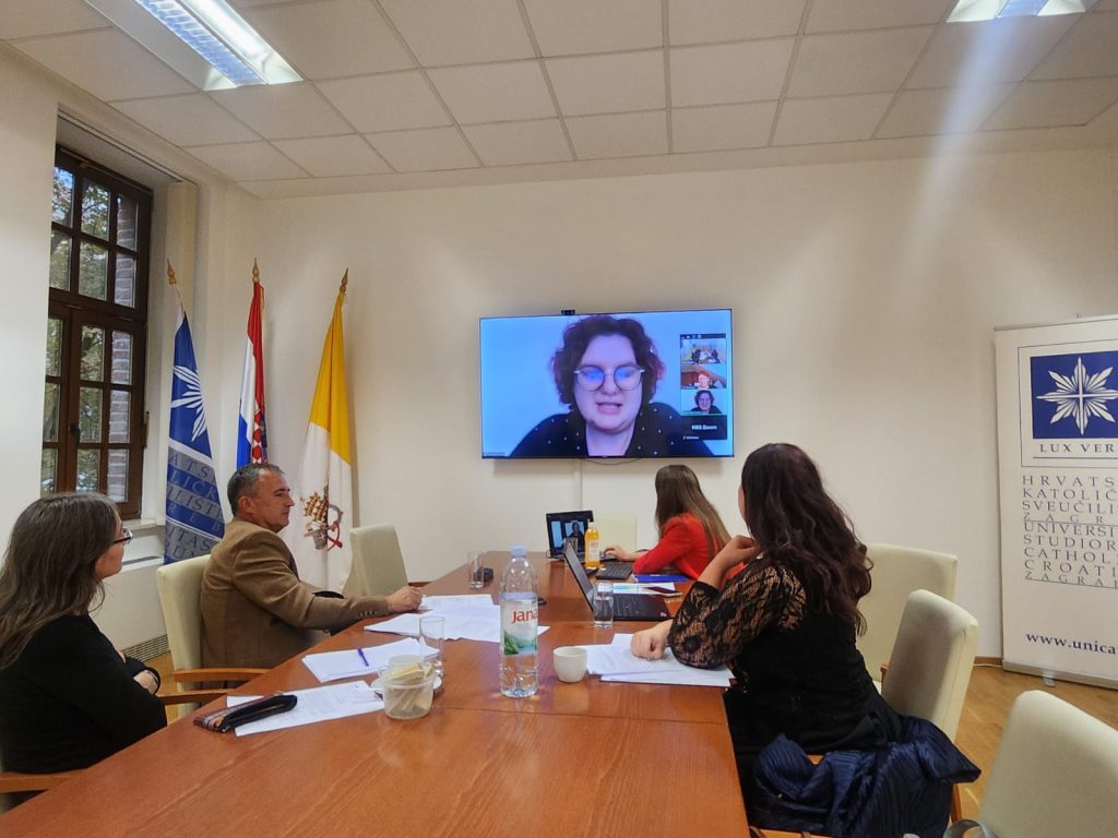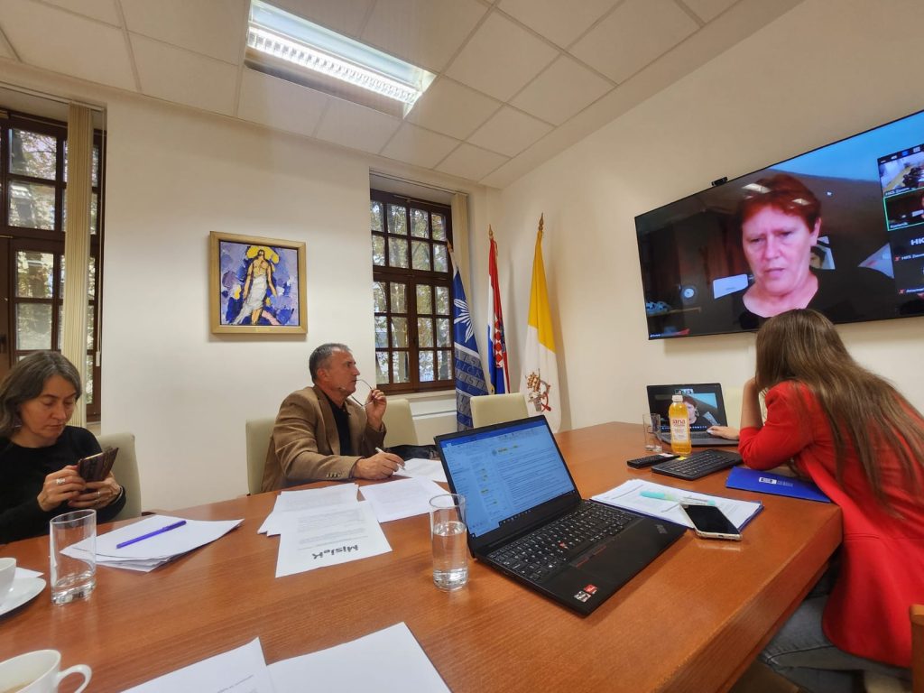 Na sastanku projektnog tima, održanog 24. rujna 2025. u 15:00 sati u Vijećnici na Hrvatskom katoličkom sveučilištu u Zagrebu, sudjelovali su dr. sc. Dragan Nimac, dr. sc. Maria Florencia Luchetti, prof. dr. sc. Jasna Ćurković Nimac, izv. prof. dr. sc. Ivana Brstilo Lovrić, Danijela Deković, prof. povijesti, Anamarija Sušec, prof. hrvatskog jezika, te Valentina Petrović, mag. soc., doktorandica. Danijela Deković i Anamarija Sušec prisustvovale su sastanku putem Zoom platforme, dok su ostali članovi sudjelovali uživo. Ostali članovi projektnog tima ispričali su se zbog svojih već ranije preuzetih obveza (Ana Perinić Lewis, prof. dr. sc. Vine Mihaljević).  Dr. sc Mateja Dadić trenutno je na porodiljnom dopustu te do daljnjega neće biti uključena u projektne aktivnosti.